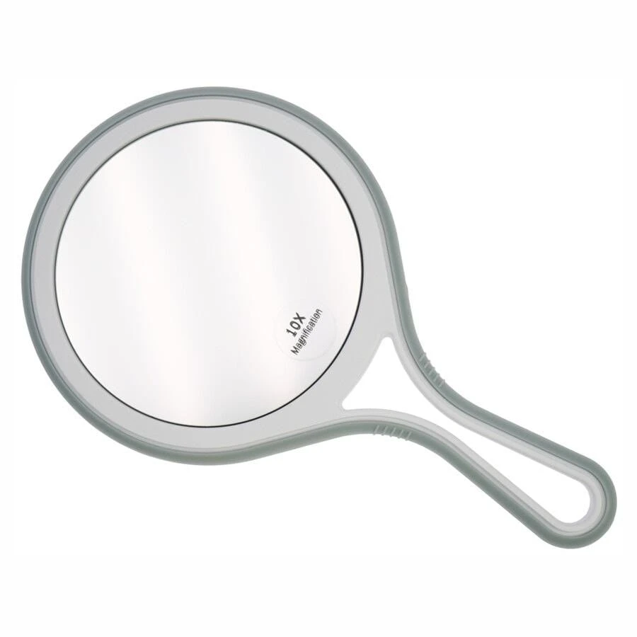 Handspiegel van Fantasia is gemaakt van kunststof met gummie ergonomische materiaal aan het handvat. De spiegel is 10 x vergrotend en bevat ook een normale spiegel.