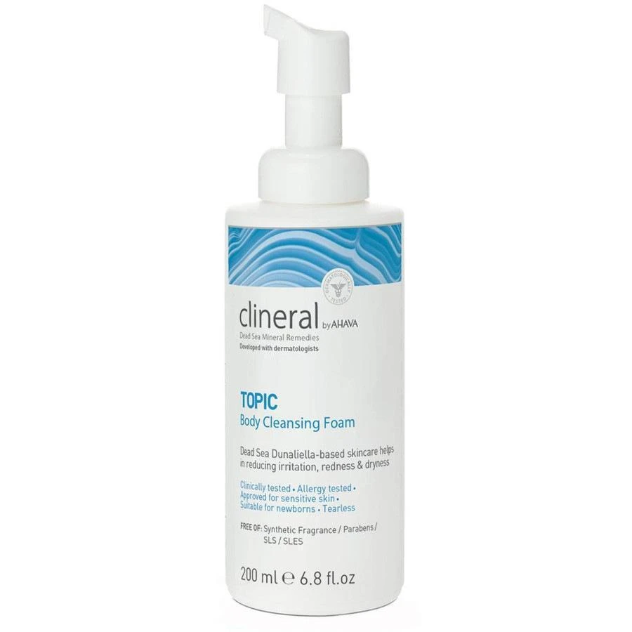 De TOPIC Body Cleansing Foam van Clineral by AHAVA is een reinigingsschuim speciaal voor het reinigen en behandelen van de huid met atopisch eczeem. Mineralen uit de Dode Zee helpen bij het aanzienlijk verminderen van de symptomen van atopisch eczeem. Door de natuurlijke extracten is de Cleansing Foam ook geschikt voor pasgeboren baby’s ter behandeling van berg en eczeem. Vrij van synthethische geurstoffen, parabenen, SLS/SLES.