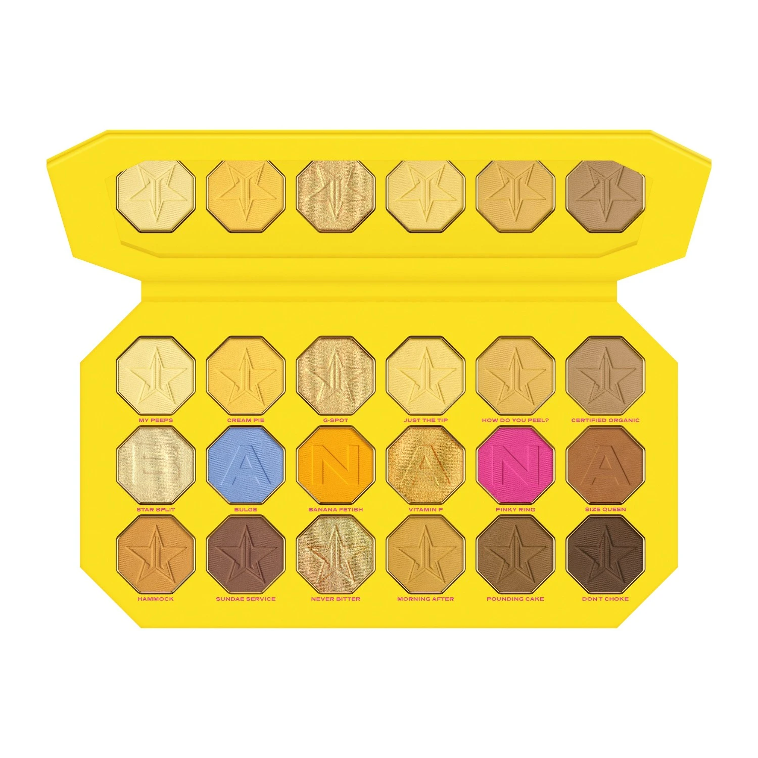 We zijn hier om je bananendagdromen te vervullen met dit artistieke palet met 18 holtes, inclusief een gloednieuwe achthoekige panvorm! De 4 metallic glans en 14 matte artistieke schaduwen, die heerlijke gele en bruine tinten serveren, zorgen gegarandeerd voor verbluffende alledaagse looks met de kenmerkende Jeffree POP in roze en felblauw