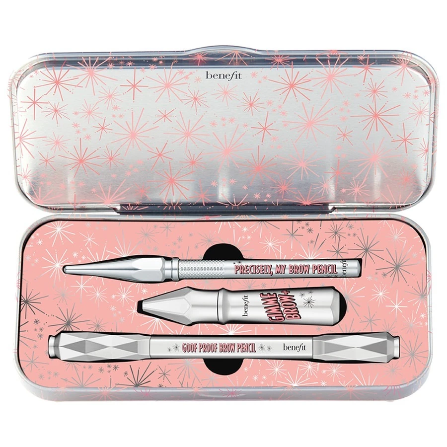 Goof Proof-wenkbrauwpotlood vult uw wenkbrauwen eenvoudig met de 12 uur houdende*, waterproof** formule en speciale Goof Proof-punt. Met de ultrafijne punt van Precisely, My Brow-wenkbrauwpotlood tekent u natuurlijke, dunne streepjes. De veegbestendige kleur blijft 12 uur*** lang zitten. Gimme Brow+-wenkbrauwgel met microvezeltjes brengt u aan voor direct vollere wenkbrauwen.