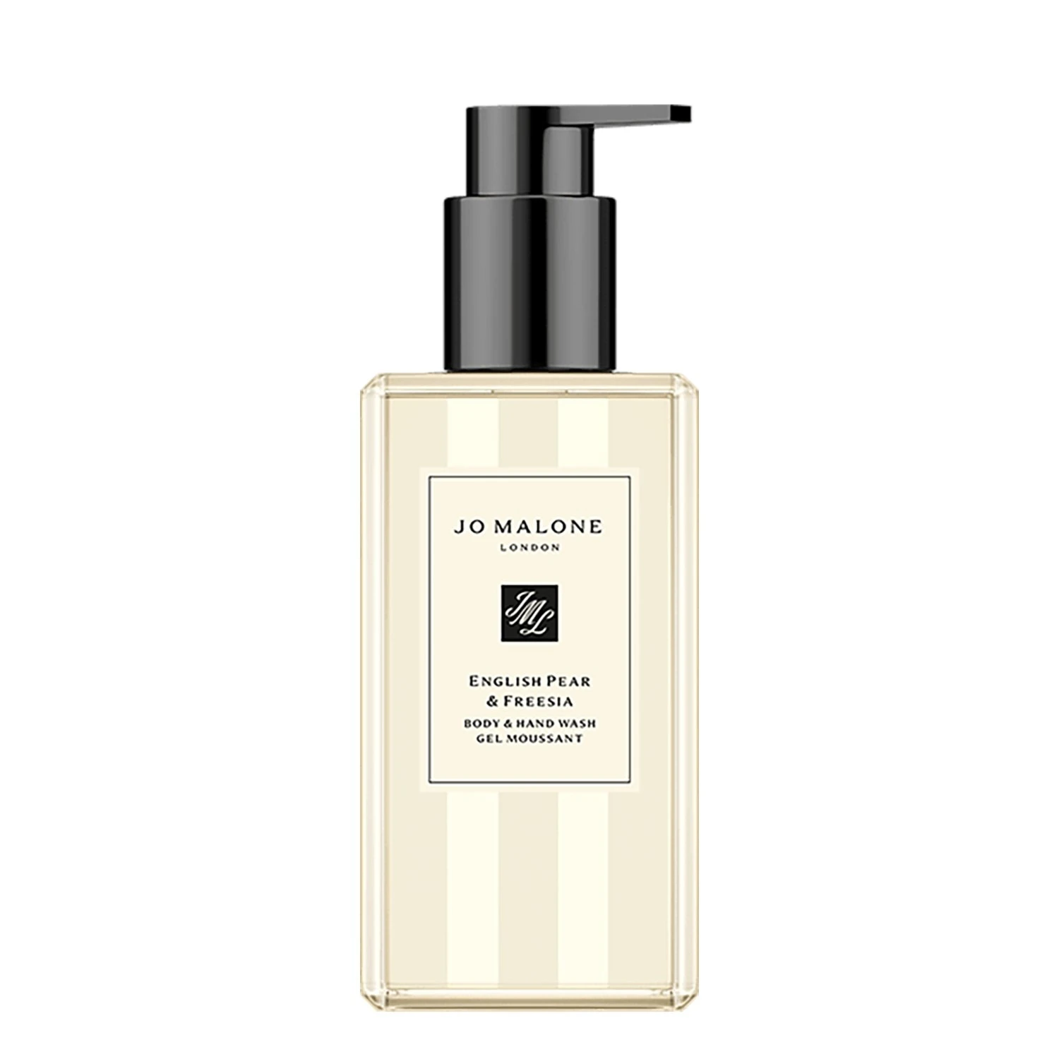 De verfrissende Jo Malone London English Pear & Freesia Body & Hand Wash. Deze kristalheldere gel, gemaakt met weideschuimzaad, reinigt de huid op milde wijze en geeft het lichaam en handen een verzorgd en zacht gevoel. Het rijke schuim verspreidt de zachte, gouden geur van net rijpe peren en koele witte fresia’s.