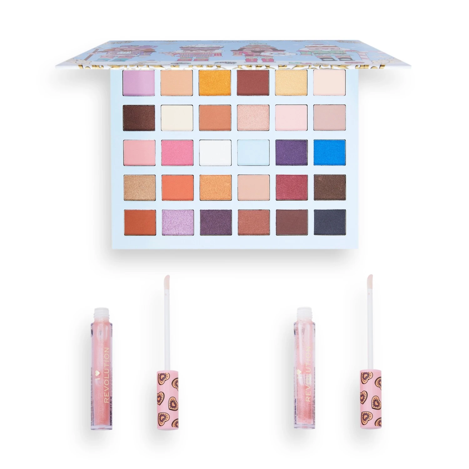 De I Heart Revolution Nutcracker-set zit boordevol zalige verrassingen voor de feestdagen, zoals twee overheerlijke Lip-Glosses en een sprankelend Shadow-palet met 30 vakjes vol zachte nudes en blauwtinten voor eindeloze looks!
