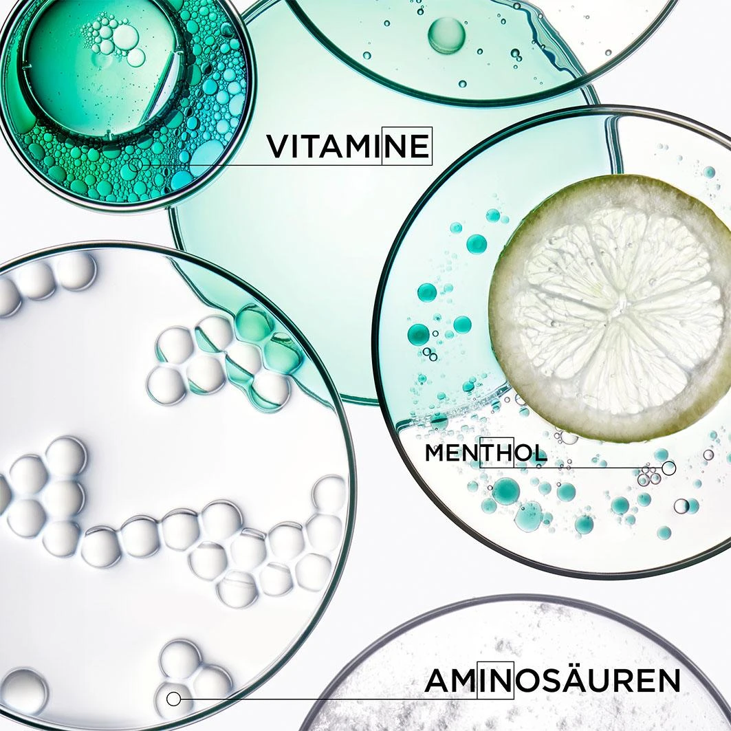 De Calophyllum Olie in de formule zorgt ervoor dat bestaande irritaties en ontstekingen worden gekalmeerd. Piroctone Olamine voorkomt jeuk en Mentho Derivative frist de hoofdhuid op. Glycerol hydrateert en verzacht de hoofdhuid en beschermt tegen externe factoren. De formule is hypoallergeen, siliconenvrij en dermatologisch getest.