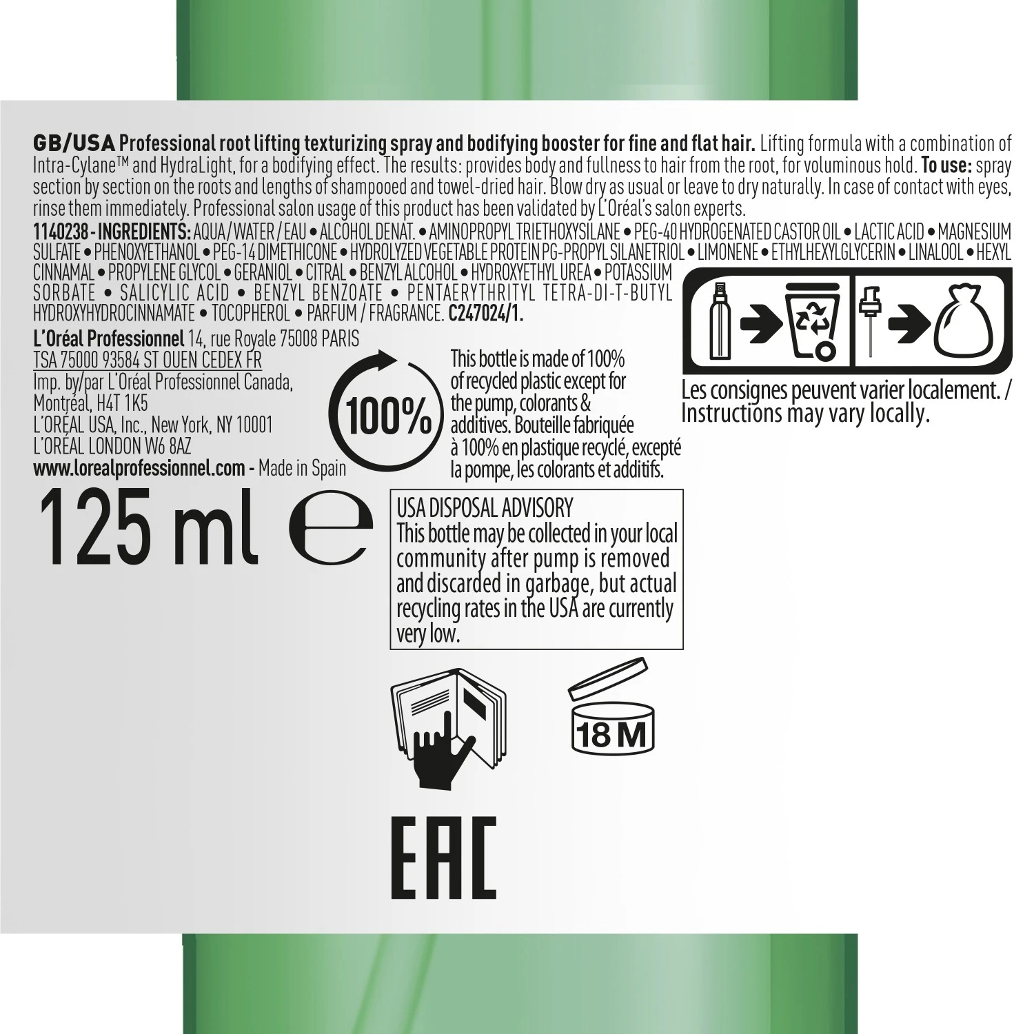 L’Oréal Professionnel Serie Expert Volumetry Spray is een liftende volumespray voor fijn en gevoelig haar, die op de haaraanzet en lengtes kan worden gebruikt voor een directe boost. De spray geeft het haar body zonder te verzwaren. De Intra-Cylane™ in de formule boost en versterkt de haarvezel van binnenuit en is daardoor ideaal voor fijn, kwetsbaar haar dat snel plat wordt. Deze innovatieve molecule dringt tot diep in de vezel door en vormt een flexibel maar sterk netwerk dat het haar ondersteunt en volume creëert. Het werkzame Hydralight vindt zijn oorsprong in de huidverzorging en zorgt voor een doelgerichte hydratatie en natuurlijke glans.